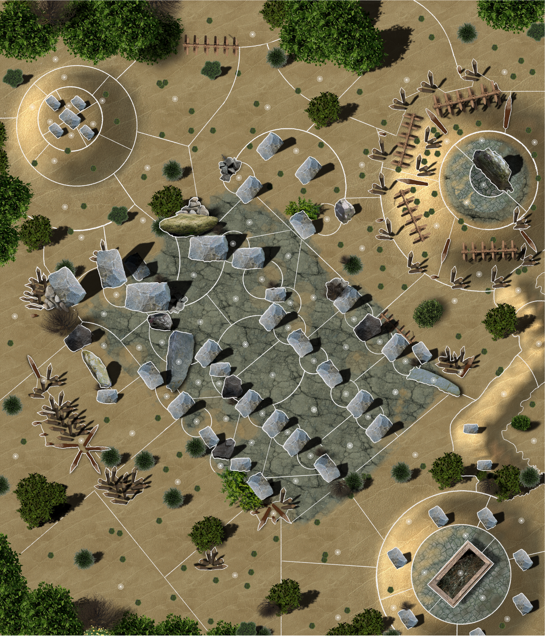Wide center areas were divided in smaller ones to allow heroes to move safely inside the monolith zone.